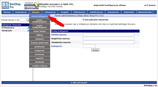 Proszę także pamiętać, że w sklepie nie są wyświetlane puste kategorie tzn kategoria pojawi się w sklepie dopiero po dodaniu do niej co najmniej jednego towaru.