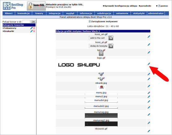Zostaną wyświetlone wszystkie obrazki danego motywu. Należy odszukać interesujący nas obrazek, np logo.gif a następnie kliknąć w ikonę ołówka przy wybranym elemencie graficznym.