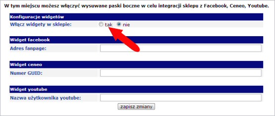 W celu uruchomienia widgeta Youtube nalezy w panelu administracyjnym sklepu wpisać swoją nazwę użytkownika Youtube.
