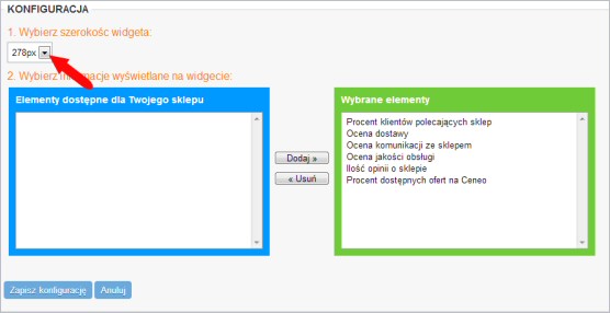 Krok 4. W konfiguracji widgeta wybierz szerokość 278 px, a informacje wyświetlane w widgecie ustaw wg własnych potrzeb. Na końcu zapisz konfiguracje i odblokuj wyświetlanie widgeta.