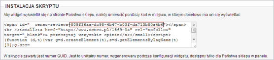 Krok 5. Z kodu wygenerowanego w panelu ceneo skupiuj swój numer GUID ( numer GUID został zaznaczony w czerwonej ramce) i wklej go do panelu administratora sklepu.